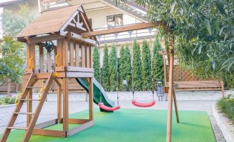 For the comfort of guests, there is a service of services — free access to a wireless Wi-Fi network, airport shuttle, safe deposit box. The team also invites guests to relax in the outdoor heated pool with therapeutic salt water and a sun terrace. A separate spacious terrace with sun loungers on the second level. There is a garden with unique flowers, a playground and a library, a gazebo with an authentic barbecue area equipped with everything necessary for comfortable cooking and relaxation, an on-site dining room with homemade cuisine made from organic ingredients.