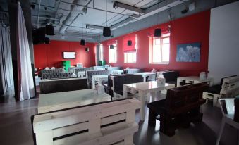 Были в семейном номере и мне очень понравилась обстановка в отеле. на 1 этаже люди играли в приставки, игры, настольный теннис, футбол. есть столовая, но цены неоправданно высокие. Есть серф кофе. Само местоположение суперское, высоко в горах, рядом альпаки парк, подъемник, вид шикарный. Есть магазин продуктовый! Советую