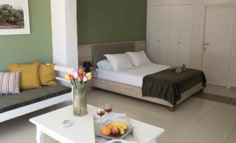 Had a fab week here suite 4. Clean, great little pool. Needs more shade for afternoon sun. Fab setting. Friendly helpful staff. We walked (it is a long walk) into Elounda for meals & entertainment and taxi back €11. Did have a meal delivery one night. Do need a car as nothing else near to hand.
