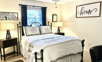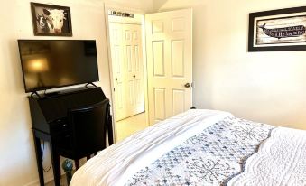 We are fully furnished including a fully stocked kitchen and wonderful crisp white linens. Our guests love the quiet evenings and wonderful views of the woodlands and pines.