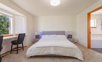 Your VRBO at 907 S Salish Ct accommodates up to 6 guests. Upstairs, you'll find 2 bedrooms, each with an en-suite bathroom and furnished with a king and a queen bed, respectively. The lower level features 1 double bedroom and a bonus room, a divided wall, and a shared bathroom equipped with a bidet. Excluding the garage and locked rooms.