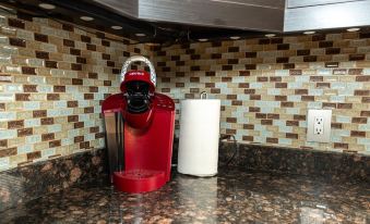 Apartment #1 Kitchen is a delight with lots of granite counter space, high-end appliances, and all the kitchen items you might want, including both a traditional coffee maker and Keurig (with K-cup pods included).
