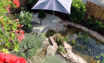 Additionally usable is the garden area with pond and orchard. Pitches and a garage are also available. There are 2 touring bikes and a pedelec (this for a fee) on the property.