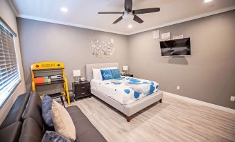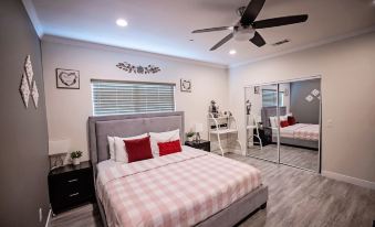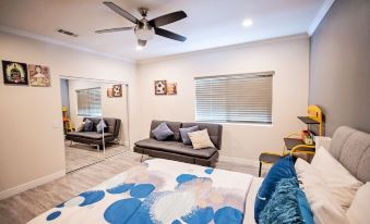 Located in Anaheim, between beautiful beaches and iconic amusement parks, you are mere minutes away from the world-renowned Disneyland theme park, fun-filled Knott’s Berry Farm, lively Newport Beach Pier, and countless other attractions that SoCal has to offer. This spacious yet cozy (condo) has all the ingredients to make your stay away from home seem more at home, which includes essential house pieces such as a modern kitchen and tableware, an advanced washer and dryer, and spacious king and queen-size beds.About pets:No pets allowed.About checkOut:Check out before 11:00 AM.About children:Children allowed: ages 0-17.About checkIn:Check in after 4:00 PM.About smoking:Smoking is not permitted.About events:No events allowed.