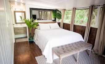 Sweet Banana was wonderful! The weather on our arrival was not! Colder temperatures and a down-poor made for muddy unpacking conditions and we were surprised to discover the bedroom (of the 2-room structure) had no glass in the wall of windows. We hung extra layers over the curtain rods and made use of the extra blankets provided. This made for one of the best night sleeps ever! Bed and bedding were super comfortable. Hot water in the bathroom came quickly. The hot plate and microwave were adequate for making simple meals (pasta, seared tuna, stir fries, eggs…). Beautiful feral roosters, chickens, and chicks abound (no alarm clock needed!). Kaala lives on the property and was super responsive but never intruding. Great stay if you want to get away from it all!