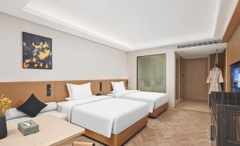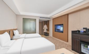 酒店設施一流,房間整潔雅緻,前台小姐姐熱情細緻,有茶飲免費,樓層高,安靜,房間內床墊柔軟易入睡,(失眠困難户推薦),早餐餐食豐富,手工撒湯不錯,炒麪味道超好,酒店備有夏日清涼冷飲,附近有超市,生活品零食購物編輯,麪皮味道不錯。酒店停車場很大,樓道裝修雅緻。