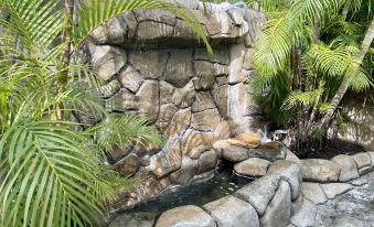 The master bedroom looks and feels like a luxurious hotel room with a King size mattress and soft, bamboo sheets. You also have an incredible view of the soothing rock wall water feature.