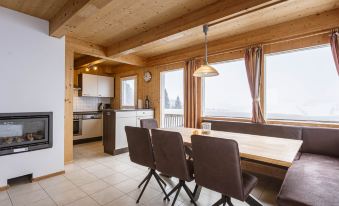 Annaberg-Lungötz: Located in the heart of the Annaberg – Zwieselalm – Rußbach – Gosau ski area, each house is individually furnished. Sleeping options include double, single, and/or bunk beds. One parking space is available near the house. Cosy, comfortable resort "Alpendorf Dachstein West by AlpsR.". 2 km from the centre of Annaberg, 400 m from the skiing area. For shared use: indoor pool. In the complex: restaurant, sauna, relaxation room, spa area, kiosk, central heating system. Bread roll service. Parking at the house. Central parking spaces. Grocery 4 km, supermarket 4 km, bus stop "Golling-Abtenau" 29 km, railway station "Annaberg Haslau" 3 km. Skisport facilities 400 m. Nearby attractions: Salzburg 60 km. Well-known ski regions can easily be reached: Annaberg – Zwieselalm – Rußbach – Gosau. Hiking paths: Bischofsmütze, Dachstein. Please note: the photograph shows a typical example. All houses/apartments are individually designed/furnished. "mit 4 Schlafzimmern für 8 Personen", 5-room house 105 m2 on 2 levels. Modern and tasteful furnishings: entrance hall. Living/sleeping room with dining table and satellite TV (flat screen). Open kitchen (4 hot plates, dishwasher, toaster, kettle, microwave, electric coffee machine). Shower/WC. Heating. Upper floor: 3 double bedrooms. 1 room with 1 x 2 bunk beds. Bath or shower/WC. Balcony terrace. Terrace furniture. Facilities: Internet (WiFi, free). Please note: non-smokers only. 1 pet/ dog allowed. The property is one of a type of property or apartment.