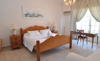 The villa is walking distance to the beach, shops and restaurants. It can sleep up to three families without everyone getting on top of each other. There are 3 double bedrooms with en-suite bathrooms, meaning that none of the adults feel short-changed. There are a further 2 double rooms (one with an extra single bed), and there are a further 2 twin bedrooms. These rooms share 2 bathrooms, and an additional 3 WC's. All bedrooms have air-conditioning. The swimming pool area and lawn are ideal for playing family cricket and football.