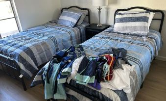 2 bedrooms: 2 single beds and 1 queen bed