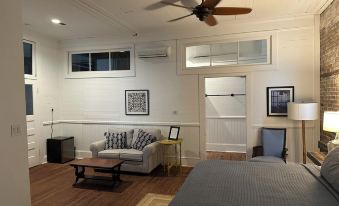 Nestled in the heart of historic Apalachicola, Florida, this charming suite offers a delightful escape with ample space to stretch out and relax. Housed in an historic building, it boasts period-correct wood floors and high ceilings, adding to its timeless charm. The suite features a luxurious king-size bed and a nice seating area. Enjoy modern amenities including a coffee maker, microwave, and mini fridge to make your stay even more comfortable.