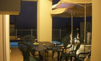 The villa has 2 double bedrooms/living & Kitchen with private 55sqm Swimming pool surrounded by Ample tiled veranda with Sun beds and out door furniture for pool party and sun bath. All rooms are Air-conditioned. Breathtaking views from balcony and private ground/garden. Walking distance to local Tavernas, Inka Supermarket and village square. Well situated to visit a great variety of villages of ancient history/archaeological or typical local life interest. Situated in one of the highest sea level of the village which provides an entire clear view of the village, sea and mountains. Away from the main roads and village which gives a peaceful environment with soothing sounds of nature. The beautiful sandy beach of Kalives only 15 min drive. The beaches of Almyrida and Georgioupolis are 20-30 Min drive. About pets:Pets allowed: dogs and cats less than 20 lbs per pet (limit 2 pets total).Pets are allowed with Additional charge.About checkOut:Check out before 10:00 AM.About children:Children allowed: ages 0-17.Plenty of Inflatable pool Toys etc in the Villa..About checkIn:Check in after 3:00 PM.About smoking:Smoking allowed: in designated areas.Smoking is not allowed in the villa.About minBookingAge:Minimum age to rent: 18.About events:Events allowed: family gatherings and birthday parties.Maximum event attendees: 12.