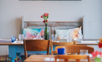 Lovely place by the water. We asked to stay for dinner but told could only do 5.45 which was just as we arrived and we wanted to eat later. Tables free all evening but told they could only feed so many people every 15 mins. Surely 2 residents could have been fed???!!! Very disappointing. Room so light we didn’t sleep. Fantastic bathroom. Had to park overnight in a pay snd display as no parking which wasn’t mentioned on booking. Delicious breakfast.