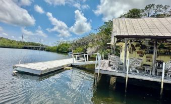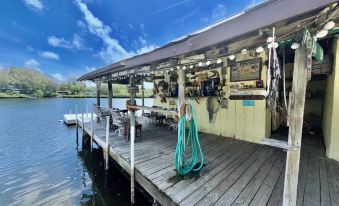Grand Opening! Now available, Your tranquil island getaway awaits. Discover peace nestled off the Gulf of America, offering world renowned fishing, kayaking, and incredible stargazing. Floating dock available for personal vessels up to 20 ft. Fresh seafood from Aripeka Stone Crab Company is just steps away for easy meals in your beautiful kitchen or on the grill. Norfleet’s Fish Camp and Market offers a boat ramp and provisions as well as fish bait. Walk to one of our connecting bridges for incredible sunsets. Enjoy the outdoors at the fish house or your private patio in true rustic Florida style. Light a camp fire and relax under the stars. Keep an eye out for manatees, dolphins, and abundant birdlife. Close to Weeki Wachee Springs, and so much more. We look forward to hosting you.