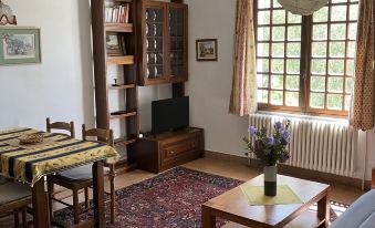 Your self-contained Holiday apartment with 45 m² is situated at ground level in the south-east facing side wing of the main house with private entrance and sunny terrace and has direct access to the pool and garden. Consisting of a large, bright living room, bedroom, bathroom and a small kitchenette, the apartment comfortably accommodates two adults.