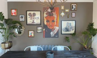 After a day of adventures, return to our cozy home and unwind in our comfortable rooms, each equipped with its own unique theme and hotel bedding. Whether it be our Old Hollywood Dining room, our trendy living room, or our Black and White bedroom, we have something to fit everyone’s style!