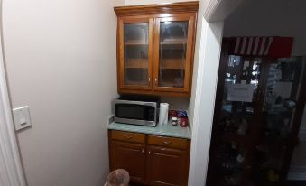 The guest part with 1500 square feet, has very large dining room and study room in first floor with a bar area and sink, coffee maker, microwave and small refrigerator - the house does not have full kitchen. there is a 48" TV on first floor with air channels. Mother's House does not provide cable channel . On second floor, there are two bedrooms and one full bathroom which are ready to use. please do not open locked doors.