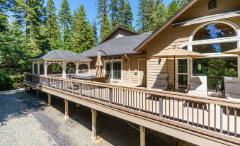 This is one of the most luxurious homes in Arnold. With all new furniture throughout, this 3,500 sq. ft of living space will entertain your entire family & friends. The home backs up to the national forest so you have complete privacy. The back deck is over 1,200 sq. ft and includes a gazebo, multiple sitting & lounging areas, hot tub, fire pit in the winter, & heat lamps. The house has a whole house generator, dual zone AC, radiant heat, and wifi. The Arnold rim trail is right outside your door for endless fun!
