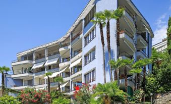 Ascona: Modern house "Palazzo Miralago", 4 storeys, built in 1960, renovated. 22 apartments in the property. Above Ascona 400 m from the centre of Ascona, in the district Lago Maggiore, in a quiet, sunny position on a slope, 400 m from the lake. In the house: reception, WiFi, lift, storage room for bicycles, central heating system, washing machine (extra), tumble dryer (for shared use, extra). Bread roll service possible. Parking (limited number of spaces, extra) on the premises, communal covered parking (extra). Parking space or garage only for small to medium-sized cars. Dimension: height 205 cm width 220 cm. Shop 400 m, grocery, supermarket 600 m, shopping centre 1.4 km, bakery, pedestrian zone 400 m, 10 minute walk to the centre, bus stop "Ascona Centro (Bus Nr. 1)" 400 m, railway station "SBB-CFF Locarno-Muralto" 4.7 km, sandy beach "Bagno Pubblico Ascona" 1.3 km, bathing lake "Lago Maggiore" 1.3 km, lake Lago Maggiore 500 m. Golf course (18 hole) 1 km, tennis 1 km. Nearby attractions: Madonana del Sasso, Orselina, Locarno-Ascona, Ronco sopra Ascona, Falconeria, Kamelienpark, Piazza Grande, Castelli di Bellinzona, Monte Verità, Ascona, Brissago Inseln. Well-known lakes can easily be reached: Lago Maggiore, Lago di Lugano, Lago di Como, Lago di Orta. Hiking paths: Monte Veritè, Ronco s. Ascona, Valle Maggia, VMonte Tamaro - Monte Lema, Monte Tamaro - Monte Lema. Please note: baby equipment on request (extra). Loading and unloading of baggage is possible at the holiday house. Additional accommodations can be booked. Property ref. CH6612.250.1-24 is situated on the same property. ATTENTION - limited number of garage spaces and limited number of outdoor parking spaces directly at the house - MUST reserve in advance. "Double Room Classic", 1-room apartment 35 m2 on 1st floor, south facing position. Living/dining room with 1 double fold-away bed (2 x 90 cm, length 200 cm), satellite TV and radio. Kitchenette (oven, electric coffee machine, Capsules for coffee machine (Nespresso) extra). Bath/WC. Oil heating. Balcony, south facing position. Beautiful view of the lake and the mountains. Facilities: Internet (WiFi, free). Please note: non-smokers only, non-smoking house. Maximum 1 pet/ dog allowed. NL-00004946