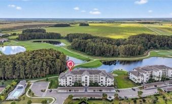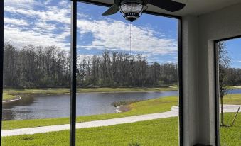 The screened-in porch overlooks the golf course and a wooded area in the back. Very tranquil place to relax, read and watch the birds and gators. The condo is bright, clean and very comfortable. Everything was perfect - brand new construction, up to date appliances, comfortable mattress and more. If you are a walker or biker, this is the place to be. The center of Ave Maria is very close (walking distance for some). I plan to stay here again!