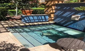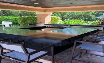 The apartment features an open layout concept with an en suite bedroom and full double sink, bathroom. The apartment is airy, with soft natural light pouring in through the floor to ceiling windows. If you want to sleep in, the apartment also offers shaded window treatments to soften the brightness. Enjoy a cup of morning tea or evening wine on the private patio surrounded by lush greenery. The space also offers a private study, and in unit laundry room. Curl up with a cozy blanket on the sleeper sofa that opens up into a generous size bed.