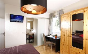 Unfortunately the hostess is extremely unfriendly and rude, the rooms are dingy and the bathroom is dirty and the price is really bad. About the restaurant I only ate in the restaurant or bistro once, the food wasn't particularly good, so I looked for another place to eat nearby Unfortunately I can't recommend it