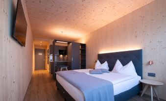 Tolles Motel mit moderner und hochwertiger Ausstattung alles in frischem, fein duftenden Holz gehalten. Küche mit Kochgelegenheit. Gute Betten und schönes Bad runden das ganze, übrigens preiswerte Angebot ab, welches noch mit einer Frühstücksbag ergänzt werden kann. System des Self-Check- ins mit gleichzeitiger Zahlung funktioniert einwandfrei. Hintere Zimmer nehmen macht Sinn wegen der Nähe zur Autobahn. Alles in allem ein gelungenes Konzept - Gratulation!