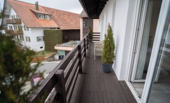 The nearest airport is Memmingen Airport, just about 34 mins from hotel by car (43.0 km) away.Which airport is closest to Exceptionally large - 180m² for families & groups?