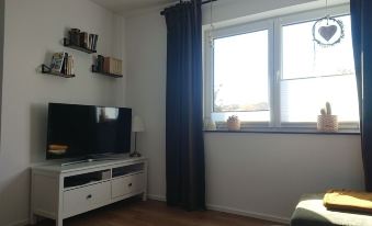 Living room (with sofa bed), fully equipped kitchen, spacious bedroom with box spring bed and pull-out side bed, (baby bed, if necessary) and daylight bathroom.