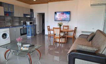 Hər şəraiti var. Daimi su, işiq, qaz. Premium markalı texnikası və aksesuarlari (Samsung, Hansgrohe). 2 yataq otaqı, böyük akvarium studio-salon (duxovka. mikrodalğalı soba, toster, elektrik çaynik qoyulacaq), lyuks hamam tualet. WIFi var. 124 sm SMART TV ilə 141 kanala baxmaq mümkündür. Təhlükəsizliyinizi qorumaq üçün həyətdə kamera var. Böyük besedka, müalicəvi qumu var. Çoxlu ağ və qara şanısı (üzüm), əncir ağacları, nar ağacları var. Sea breeza 10-12 dəq məsafə. Dənizə maşınla 4-5 dəq.About pets:No pets allowed.About checkOut:Check out before 11:00 AM.About children:Children allowed: ages 0-17.About checkIn:Check in after 12:00 PM.About smoking:Smoking is not permitted.About minBookingAge:Minimum age to rent: 18.About events:Events allowed: family gatherings, birthday parties, weddings.Maximum event attendees: 25.