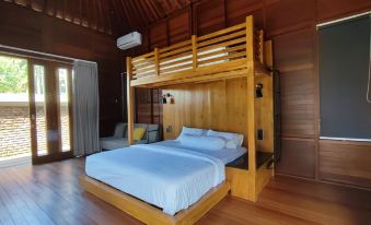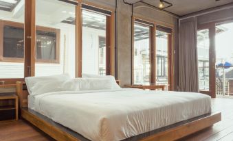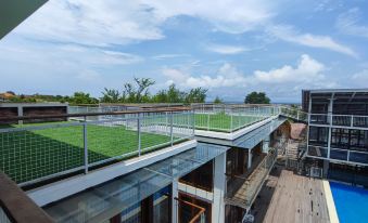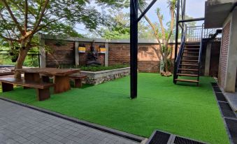 First and foremost, the staff were very friendly, making our stay very comfortable. The pool was spacious and featured a slide, providing fun for children while adults could relax by the poolside. The room was ample in size and equipped with fingerprint access. Conveniently, the bed had USB ports and power outlets. Although the attached café was small, it offered delicious food at very reasonable prices. There was also a working space available, making it ideal for digital nomads. Motorbike rentals were available, and the parking area was spacious. Considering all these amenities, the accommodation cost was unbelievably affordable.