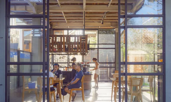 I arrived pretty late & had messaged the reception, the check in was easy. The rooms were clean & all the facilities were great. The location's not on the big road, but rather in a housing area. Didn't get the chance to try the cafe but it looked nice. However if you're scared of dogs like me, you'll probably get a little startled by the dogs. They don't bite tho, and you can definitely ask the workers there to help you get around when the dogs are near you. Overall a great stay, i had a great time. For someone who travels solo, this place is definitely 10x better than expected.