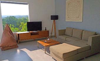 We booked this villa quite last minute after struggling to find something suitable and it completely exceeded our expectations. Split between 5 of us, it worked out as fairly budget friendly, especially considering we had a whole apartment and private pool. The aircon in one of our bedrooms unfortunately didn’t work but the staff kindly helped us relocate to another villa. The location is slightly out of the way but easily accessible with your own bike/using taxi services, and adds to the peaceful setting. Highly recommend this villa!