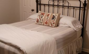 The guest house includes 2 bedrooms with a queen bed in each as well as a third bedroom with bunk beds. Other amenities include a full kitchen (pots, pans, dishes, full size refrigerator, stove, microwave, dishwasher and coffee/tea service), a large living room with a wood burning fireplace, poker table and satellite TV, charcoal BBQ grill and outdoor seating. The guest house is very private and is the only guest house located on a 2000 acre working cattle ranch and former exotic hunting ranch. Because it is a working cattle ranch we have a strict "NO PETS" policy. WiFi is available and spotty cell service depending on your carrier.