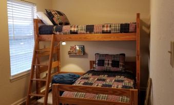 3 bedrooms: 1 bunk bed and 2 queen beds