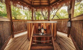 For the ultimate indulgence, immerse yourself in the soothing warmth of the beautiful Cedar Hot Tub. Unwind and let your cares melt away as you soak in the rejuvenating waters, surrounded by the beauty of nature while being nestled in the trees.