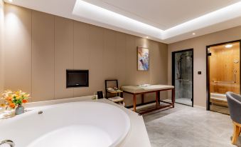 本來衹是隨便訂的酒店,沒想到浴缸體驗這麼棒!超大浴缸!水温調節很快,還配了香氛泡泡浴和花瓣,浴缸夠深,躺進去全身都被温水包裹,一天的疲勞瞬間消散。汗蒸房的温度可以智能調節,浴缸還配了泡泡浴和玫瑰花瓣,泡完皮膚滑滑的~體驗感滿分!下次來一定再選這間!