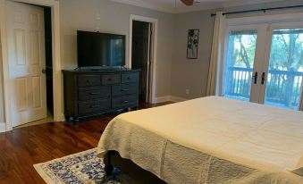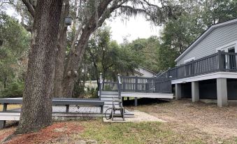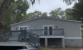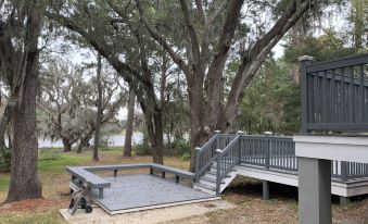 There is a large multi-level deck, where you can enjoy the beautiful marsh and trail views. Water is present during high tide, at which time you may even go fishing.
