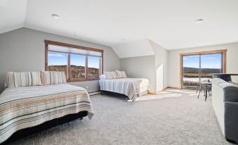 Open floor plan with large floor-to-ceiling windows that allow you to enjoy gorgeous views. Main floor bedroom suite with king bed. Two second floor bedrooms with queen beds. Large bonus room with two double beds, sleeper sofa and additional entertainment area.
