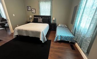This house has been completely remodeled with high ceilings, pocket doors, walk in closets, all new appliances including dishwasher and offers street parking and a driveway in the back of the house. Sleeps 6 guest. 2 queen beds,1 rollaway bed and and a large sectional sofa. Juat a few steps to the Milwaukee Trail. Centrally located in town, close to restaurants and grocery stores. 20 miles to Bloomington and Indiana University. 14 miles to Lake Monroe and the Hoosier National Forest. French Lick Casino 28 miles.About pets:Pets allowed: dogs and cats less than 50 lbs per pet (limit 2 pets total).About checkOut:Check out before 10:00 AM.About children:Children allowed: ages 0-17.About customRules:Please empty all trash and place in the blue barrel outside.