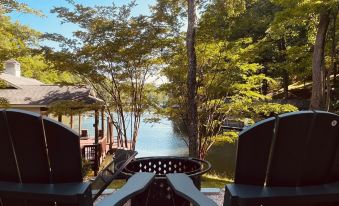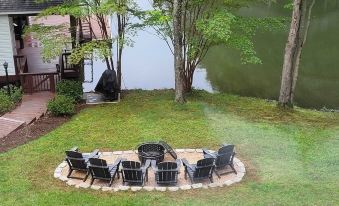 The lake-side fire pit area with 6 Adirondack chairs is a perfect place to reconnect and unwind with friends and family after the sun goes down after a full day out on the water. Lake-side benches and a shaded hammock are also perfect spots to nap, read your favorite book or simply relax.