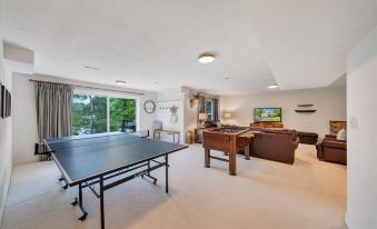 4. Main-level adult game room/lounge stocked with games & basement level rec room with ping pong & foosball for all to play