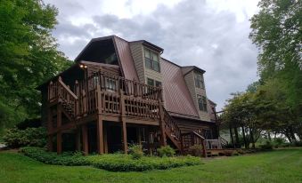 Lots of outdoor living and sitting at the house plus intermediate deck, and the huge covered dock with sitting and dining areas plus refrigerator/freezer. One of a kind on the lake. About pets:Pets allowed: dogs (limit 2 total).$50 cleaning charge for each pet.About checkOut:Check out before 10:00 AM.About children:Children allowed: ages 0-17.About checkIn:Check in after 4:00 PM.About smoking:Smoking is not permitted.About minBookingAge:Minimum age to rent: 21.About events:No events allowed.