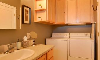 Enjoy your time in Bend with maintenance free living. Modern one-bedroom fully furnished rental. Fully equipped kitchen, washer/dryer in unit and designer touches to make your stay feel like home. Heat pump/air conditioner for your comfort. Samsung Smart TV provides streaming together with top tier HD cable television service. Accommodates a maximum of two guests. Plenty of off-street parking spaces.