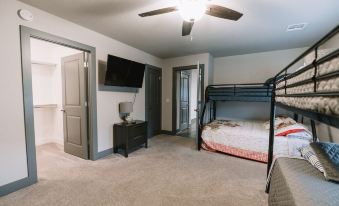 4 bedrooms: 3 bunk beds 3 queen beds and 1 king bed