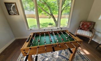 Off the kitchen is a nice sunroom with a Foosball table for a little downtime fun.