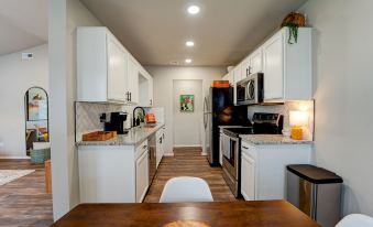 Welcome to this wonderful, newly remodeled 2-bedroom, 1-bathroom home in scenic Bentonville, perfectly designed for a longer stay with modern comforts and conveniences. Step out the front door and within a minute, you're on the Handcut Hollow Mountain Bike Trails. Both Downtown and 8th St Market are just a short drive away. The living room features a comfortable sectional sofa, ideal for enjoying entertainment on the smart TV, which includes Hulu, Netflix, Disney+, cable, and HBO Max through.About pets:No pets allowed.About checkOut:Check out before 11:00 AM.About children:Children allowed: ages 0-17.About checkIn:Check in after 3:00 PM.About smoking:Smoking is not permitted.About minBookingAge:Minimum age to rent: 18.About events:No events allowed.