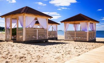 The sanatorium offers a medical department with a wide range of procedures, treatment programs, All-inclusive vouchers, a SPA salon, an aquatic center in a building with a Finnish and Turkish sauna, cozy outdoor gazebos on the seashore and barbecue houses in which it is warm even at low temperatures, an outdoor summer pool, delicious and varied cuisine: buffet breakfast, lobby bar with its own pastries, the freshest products from the farm, grilled dishes, diet meals and fitness menu. Cozy fireplace in the lobby, winter garden, library, gym, conference room, billiard room. A bright outdoor playground and a game room.