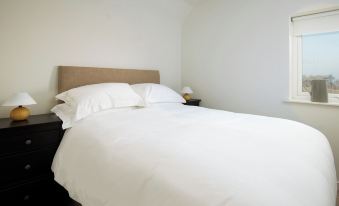Downstairs is the large light & bright living room with its cosy fire, all-new kitchen including all the must-have kit, and all-new downstairs bathroom with bath and power shower. Upstairs are the three bedrooms plus a second bathroom, with all bedrooms made up with high-quality linen and new comfy beds. Two large master bedrooms both offer a superking bed and beautiful views across countryside and out to sea. (Note: the second bedroom can be converted to twin beds upon request). The third bedroom is slightly smaller but another sweet room, with a double bed and views across farm fields and woods. The upstairs bathroom has a large power shower, as well as sink & WC.