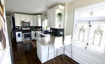 This 5-bedroom bungalow in Berwyn is perfect for your escape to a tranquil setting. With 3 queen beds and 2 futons, guests will find this adorable property spacious and cozy. Enjoy the convenience of WiFi, heating, AC, and a washing machine during your stay. The 2 bathrooms are equipped with showers and essentials for your comfort. It's easy to see why you'll be able to unwind at our place.About pets:No pets allowed.About checkOut:Check out before 11:00 AM.About children:Children allowed: ages 0-17.About checkIn:Check in after 4:00 PM.About smoking:Smoking is not permitted.About minBookingAge:Minimum age to rent: 25.About events:No events allowed.